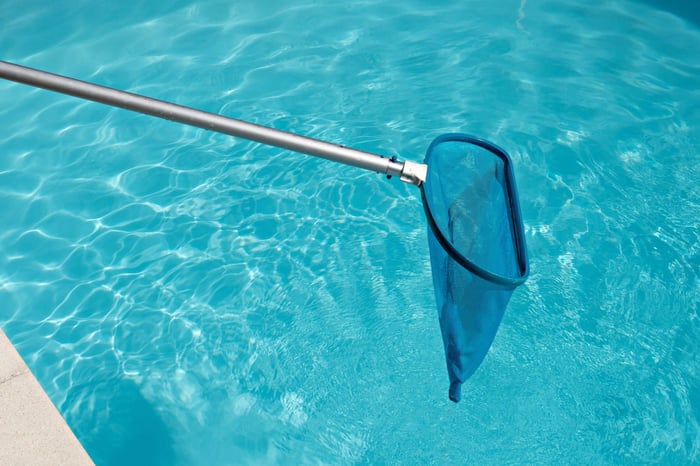 Even with a cover, some dirt, leaves, or twigs may have made their way into the pool. Use a pool skimmer to remove any visible debris floating on the surface.