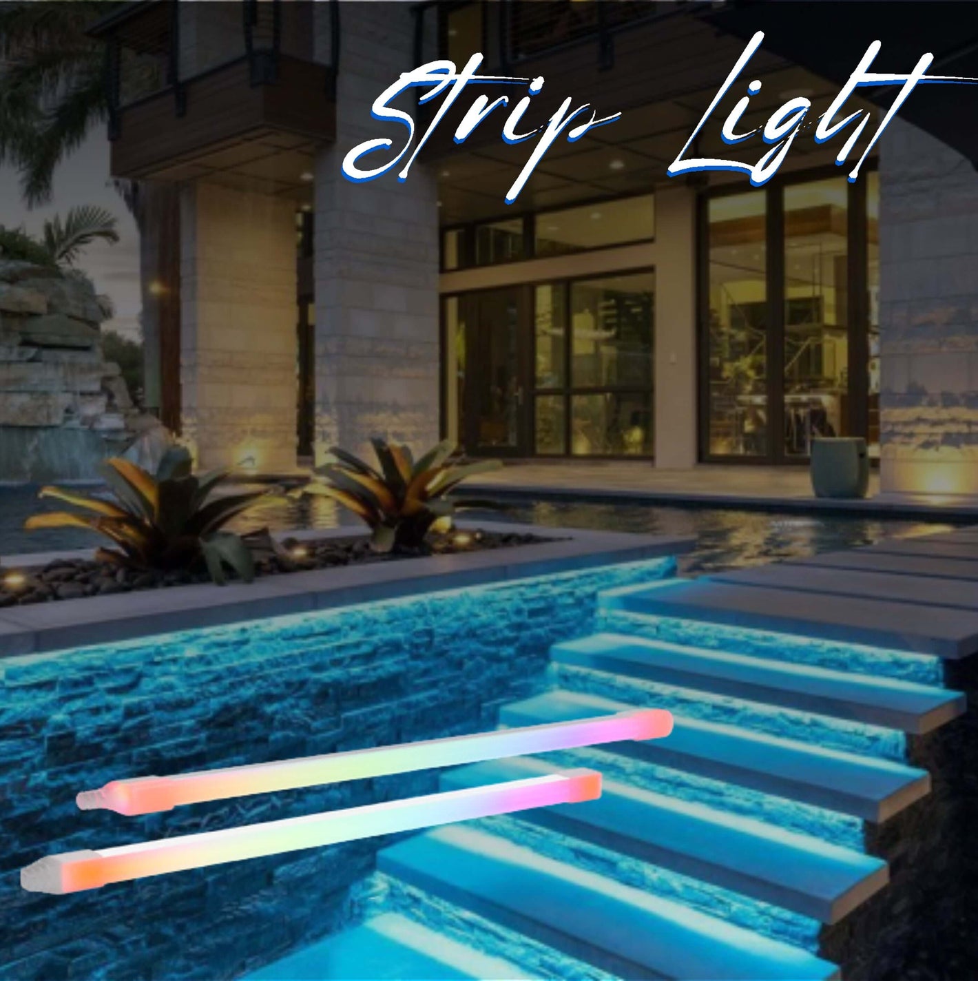 Pal’s LED strip lights provide seamless accent lighting along waterlines, stairs, and edges, creating visual depth and custom color scenes. -