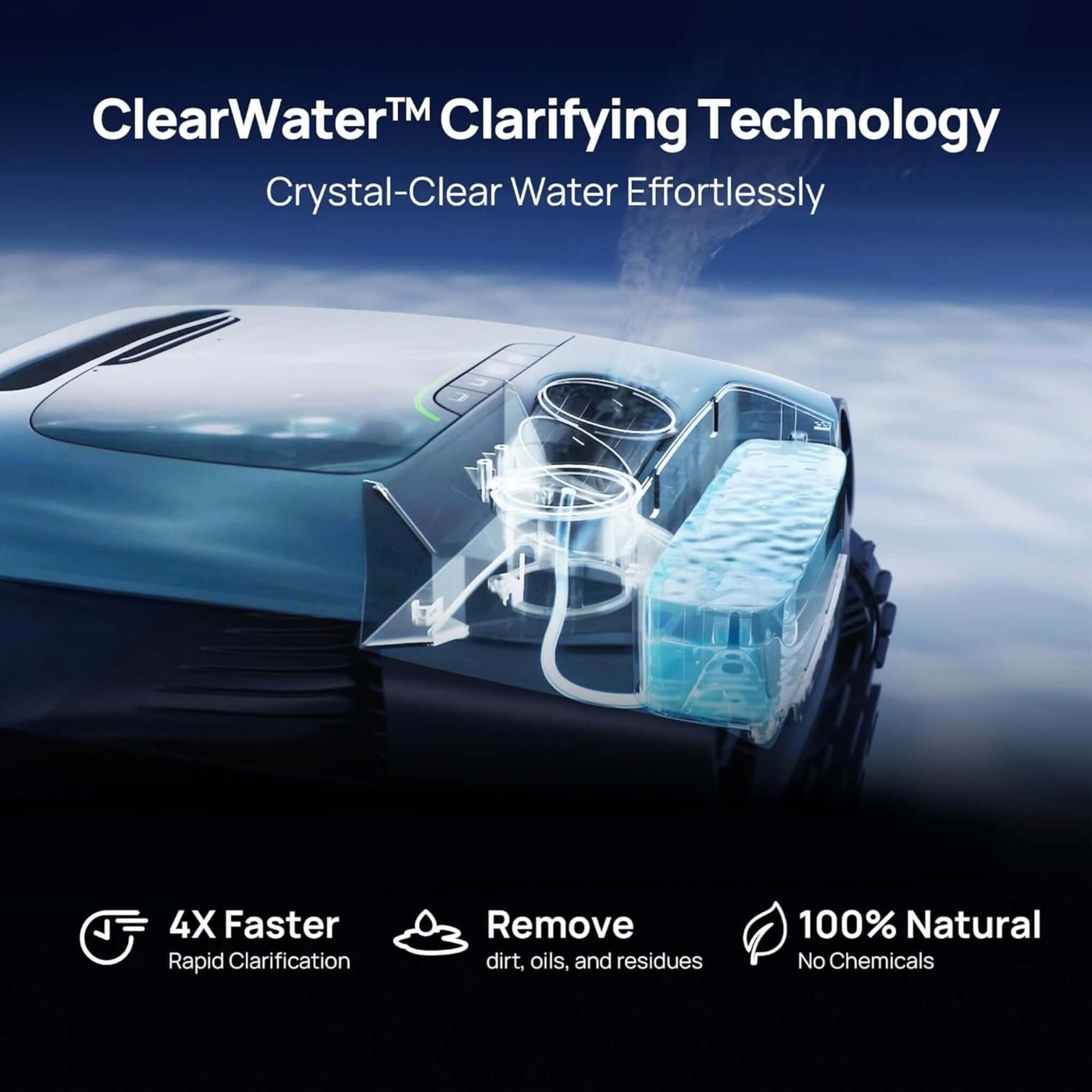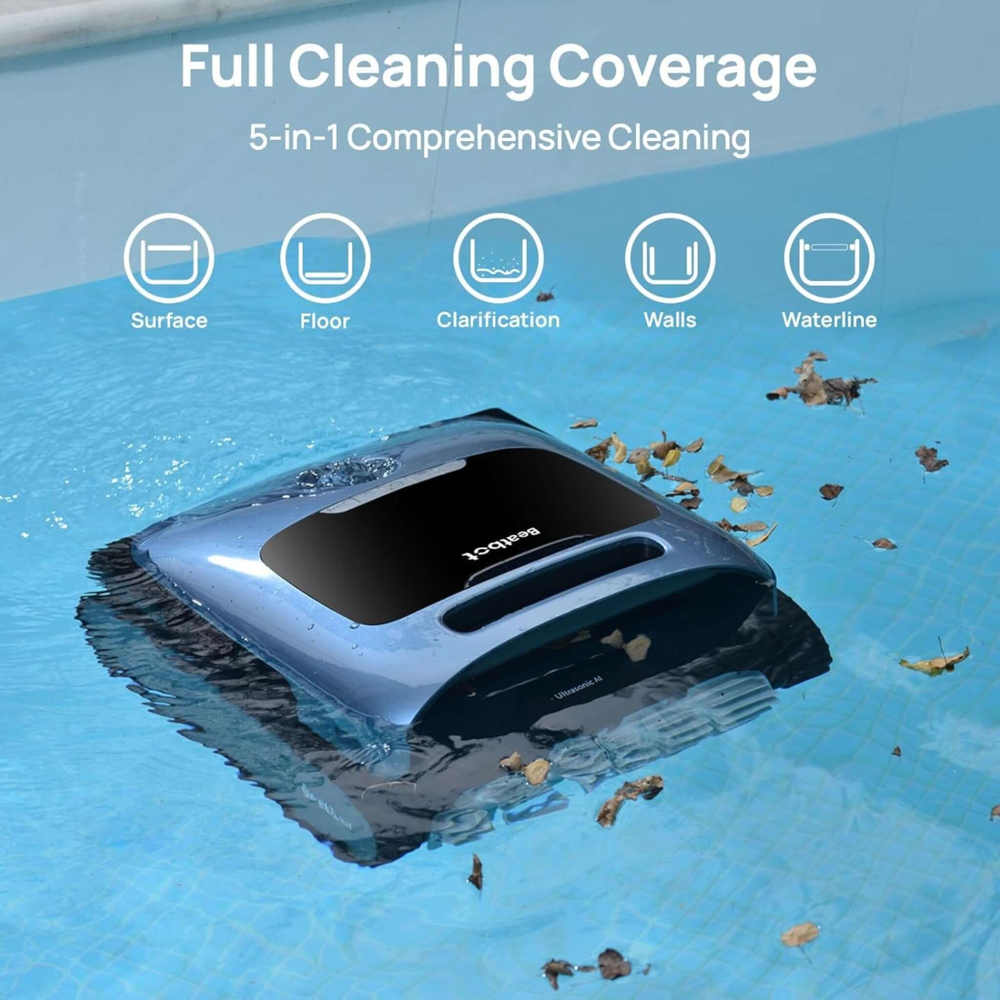 - 5-in-1 Cleaning Solution – Cleans floors, walls, waterlines, surface debris, and clarifies water.