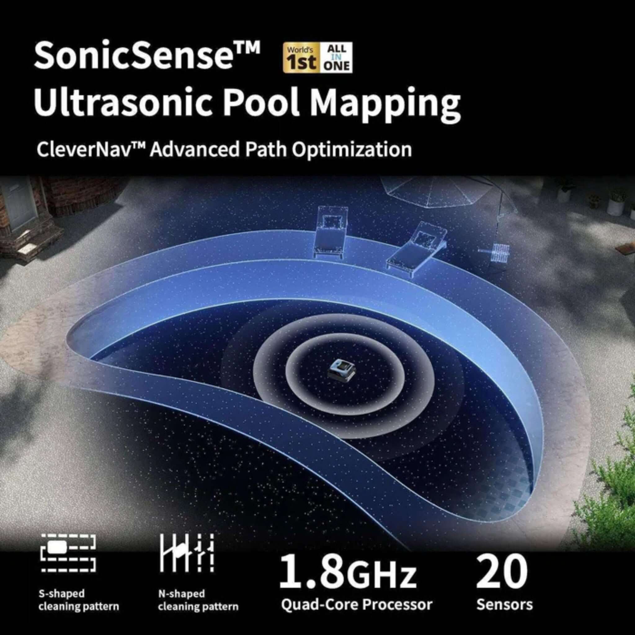 - Advanced AI Navigation – Uses 20 sensors and CleverNav™ system for full pool coverage and obstacle avoidance.
