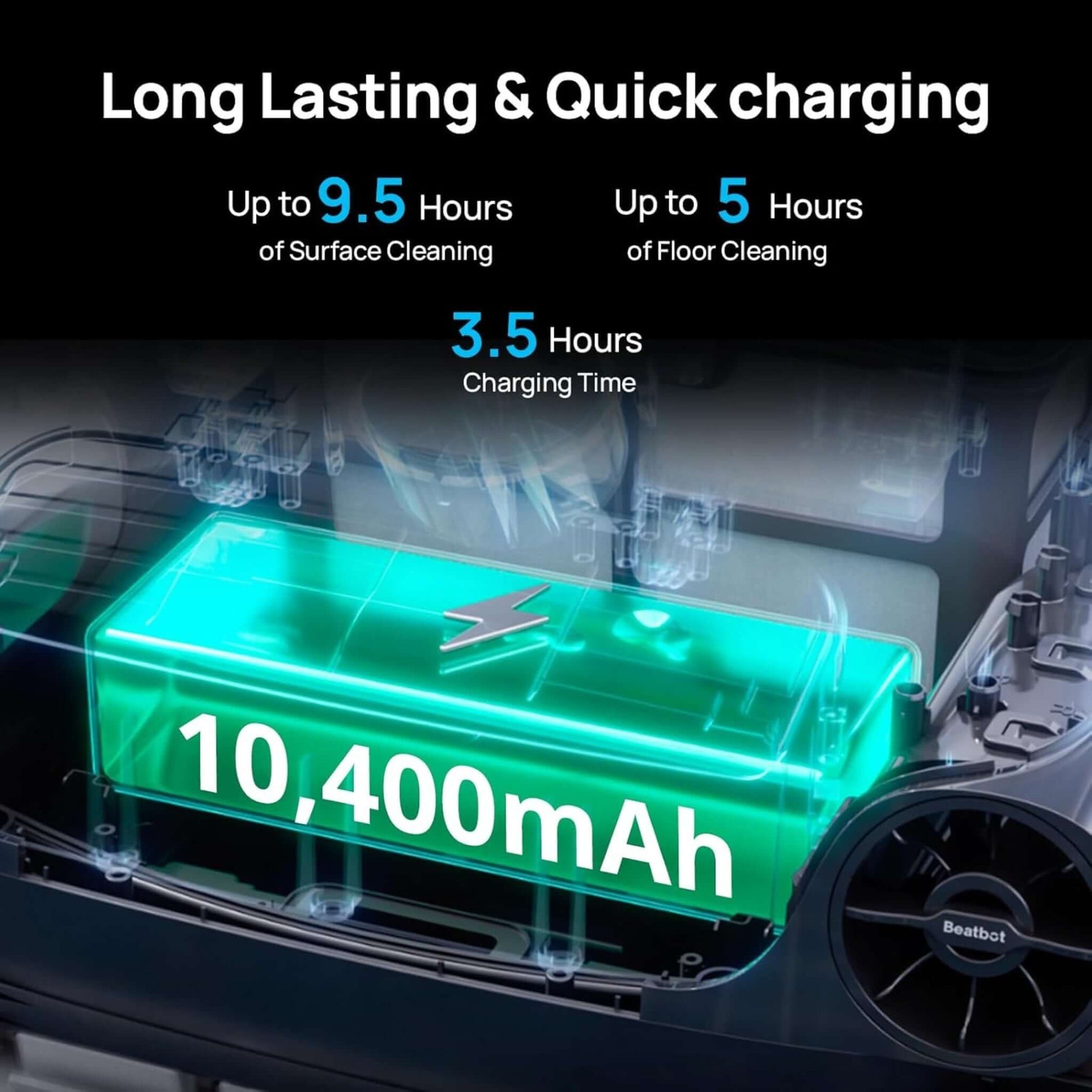 - Fast & Efficient Charging – Offers up to 9.5 hours of cleaning per charge with a 3.5-hour wireless charging time.