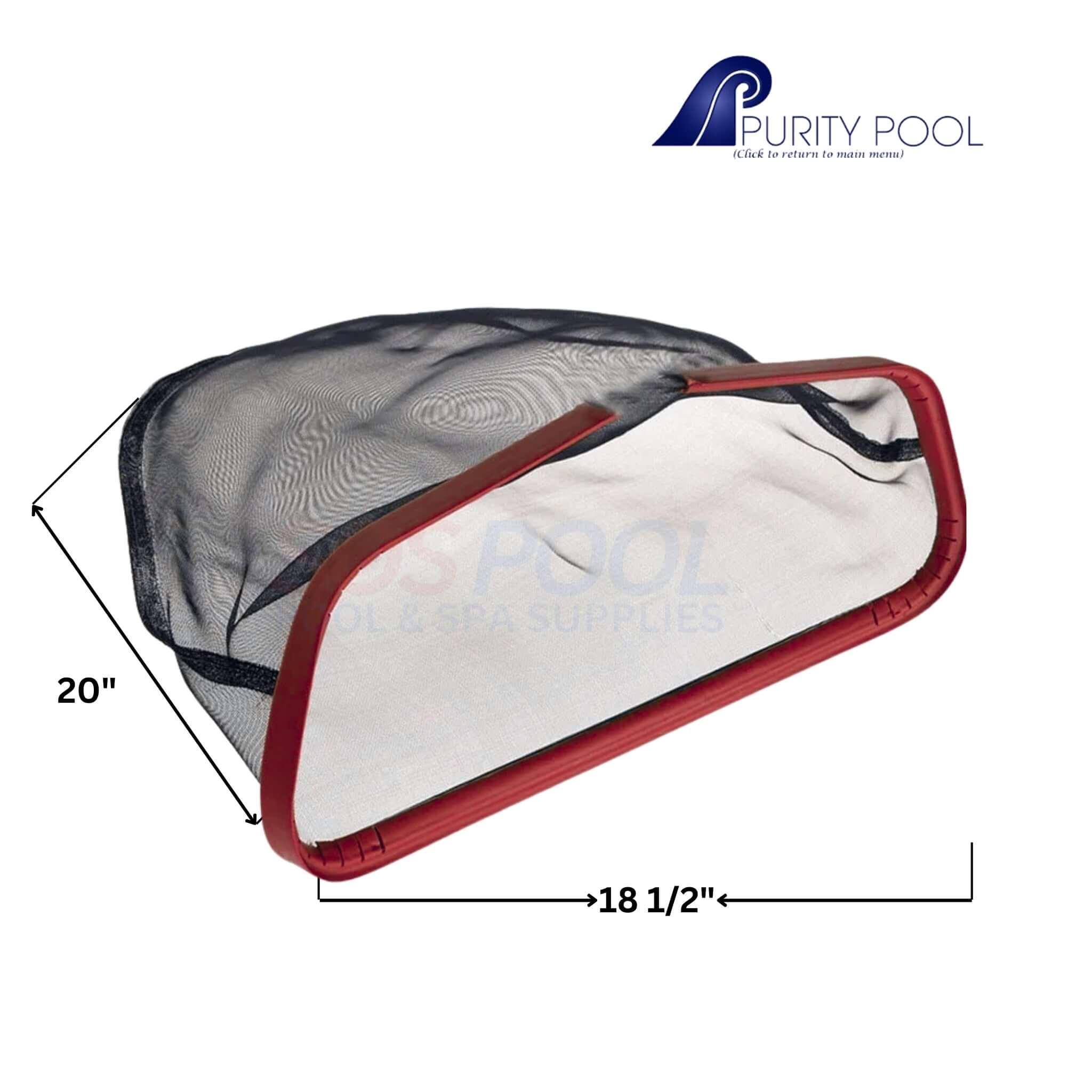Purity Pool Red Baron Bag Leaf Rake RKRBRB is a 20-inch professional-grade skimmer designed for efficient removal of leaves, debris, and dirt from pools. Featuring a durable, fine-mesh bag, it allows for maximum debris collection while minimizing drag, making it easy to maneuver through the water. The heavy-duty aluminum frame ensures long-lasting performance, while the sturdy plastic lip provides a smooth edge for scooping debris from the pool floor and walls. Designed for compatibility with standard pool poles, the Purity Pool Red Baron Bag Leaf Rake is an essential tool for maintaining a clean and debris-free swimming environment.