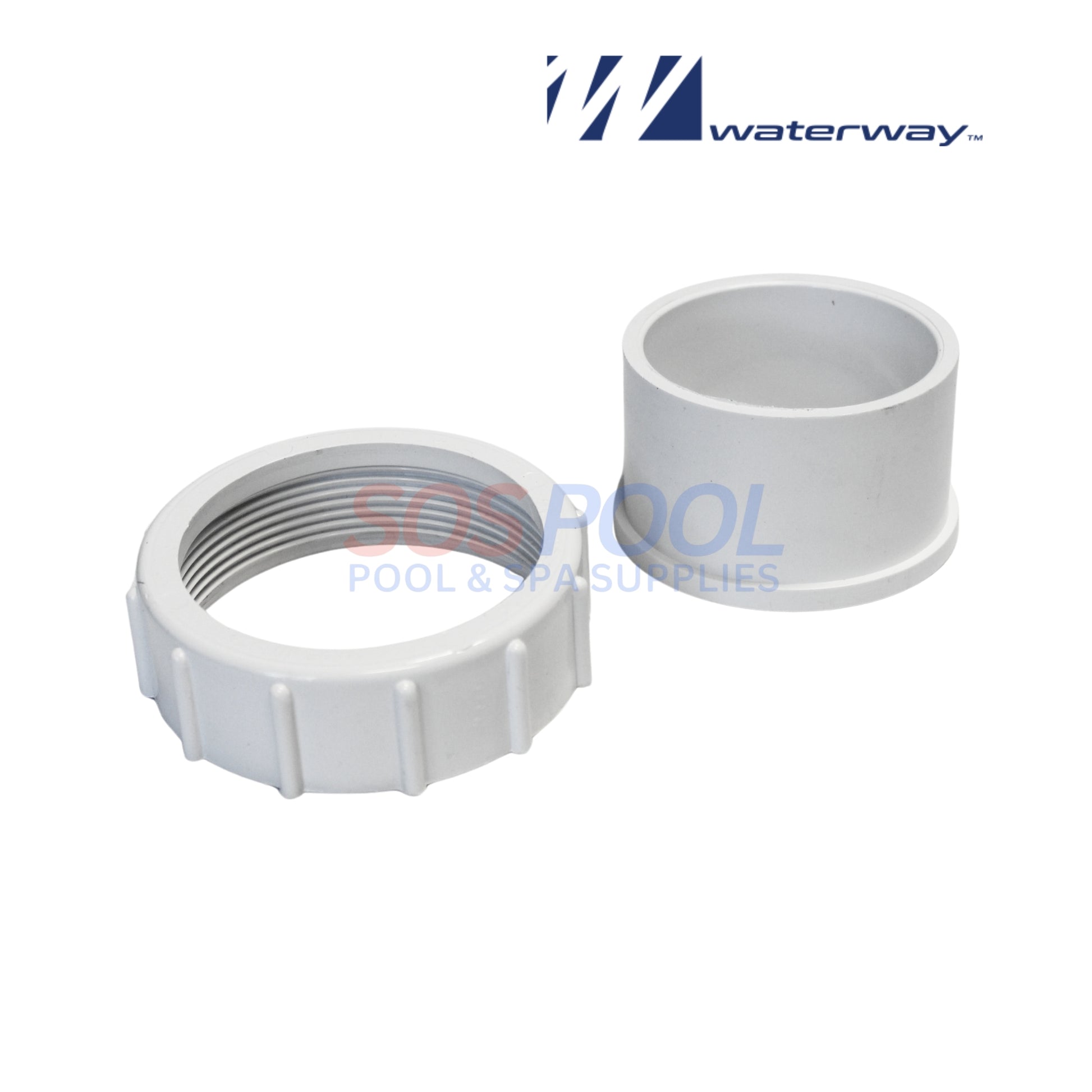 The Waterway 400-6010 Pump Union is a precision-molded PVC fitting designed to create a secure, serviceable connection on spa and pool pumps requiring a two and one half inch slip by two and one half inch nut configuration. Engineered to fit pump ports measuring roughly three and five eighths inches across the outside diameter, it includes the matching o-ring tailpiece to support reliable sealing and smooth hydraulic performance. Manufactured in the United States by Waterway Plastics, the union is intended for high-flow spa and pool circulation systems where dependable alignment and long-term durability are essential. Its robust construction and service-friendly nut design help streamline pump maintenance while maintaining consistent pressure and leak-free operation.
